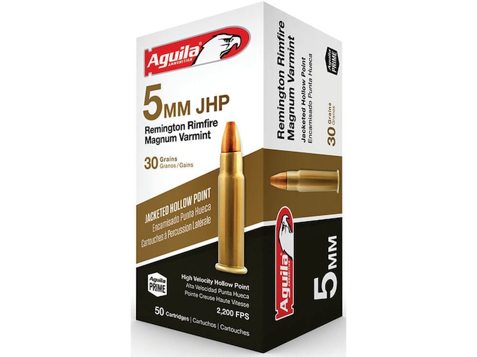 Aguila Varmint Ammunition 5mm Remington Magnum 30 Grain Jacketed Hollow Point
