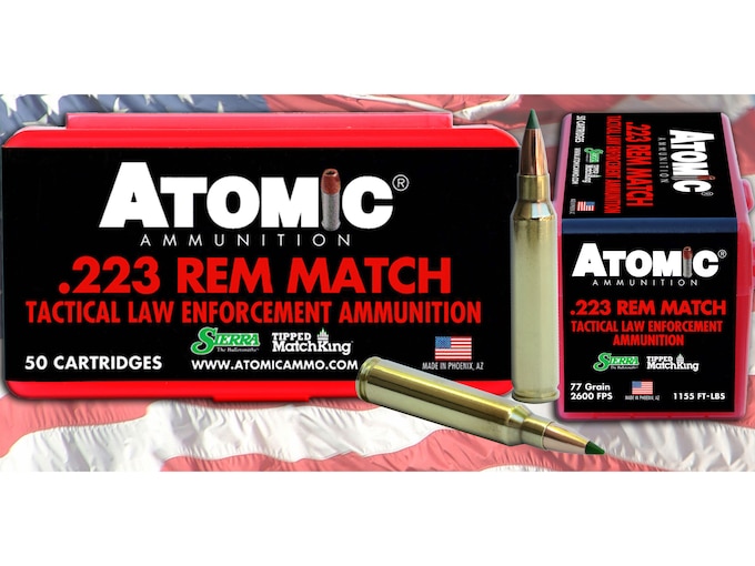 Atomic Tactical LE Ammunition 223 Remington 77 Grain Sierra Tipped MatchKing (TMK) Box of 50