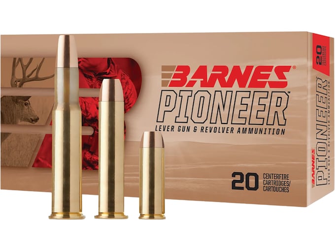 Bring your lever gun out of retirement—it’s time to experience the superior on-game performance of Barnes Pioneer ammunition. Designed specifically for lever guns and revolvers, this ammo is carefully loaded for terminal performance and delivers massive expansion and weight retention for deeper penetration. Each round is engineered for flawless feeding and cycling from tubular magazine to chamber for lightning-fast follow-up shots. This ammunition is new production, non-corrosive, in boxer-primed, reloadable brass cases.