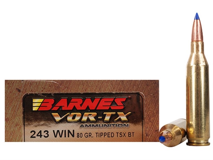 Barnes VOR-TX Ammunition 243 Winchester 80 Grain TTSX Polymer Tipped Spitzer Boat Tail Lead-Free Box of 20