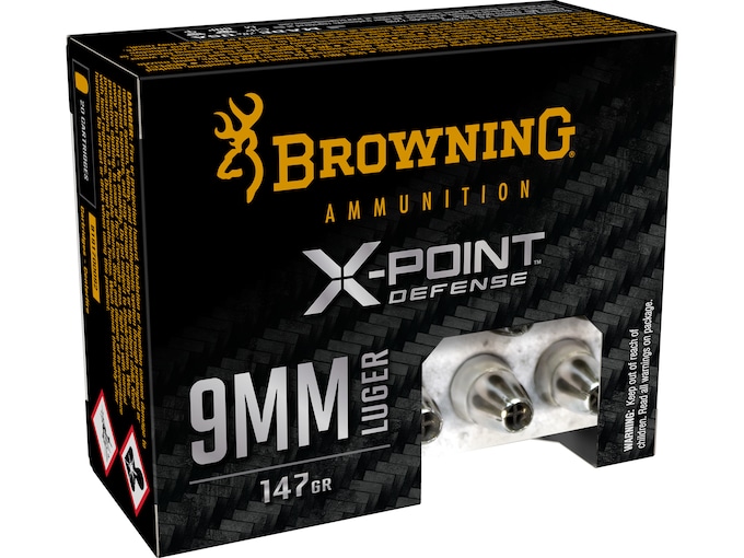 A global leader in offering quality and innovative firearms, Browning now introduces a new, full-line of superior performance ammunition for hunting, personal defense and target shooting. Browning and Winchester developed this full line of ammunition products under the Browning brand. The Browning Ammunition portfolio includes popular ammunition offerings in rifle, shotgun, handgun and rimfire, featuring advanced technologies for hunters and shooters. Browning BXP Personal Defense ammunition is designed for superior personal defense performance in reliability, expansion and penetration.  The X-Point bullet is designed to shield the hollow point through intermediate barriers. This ammunition is new production, non-corrosive, in boxer-primed, reloadable nickel plated brass cases. FeaturesGuards hollow point for consistent expansion and penetrationRapidly transfers energy to the targetFormed metallic hollow point for consistency, toughness and reliability