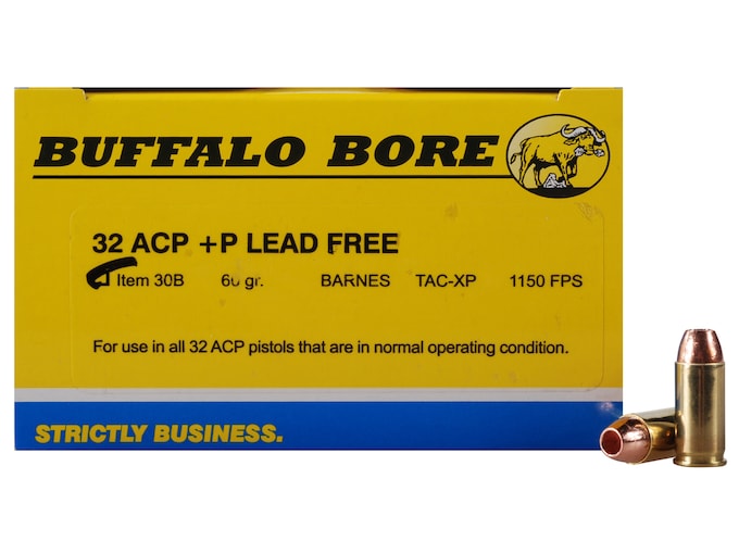 Buffalo Bore loads their ammunition with the highest quality components available. The result is ammunition that performs to the full potential of the chambering. The Barnes TAC-XP bullet is an all copper bullet designed for self-defense and law enforcement. This bullets all copper construction allows for expansion with 100% weight retention. Buffalo Bore 32 ACP +P is safe to use in all firearms chambered in 32 ACP and are in proper working condition. Ammunition is new production, non-corrosive, in boxer primed, reloadable brass cases.