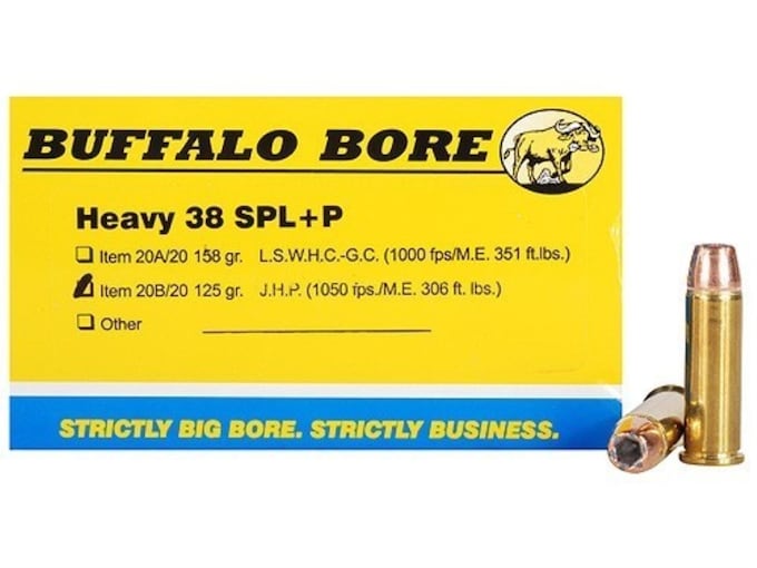 The new Buffalo Bore Heavy 38 SPL+P ammo will maximize the effectiveness of your 38 SPL revolver. The powders are flash suppressed so as to not hinder your vision should you be required to drop the hammer in low light.