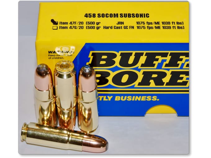 Buffalo Bore Ammunition 458 SOCOM Subsonic 500 Grain Jacketed Round Nose Box of 20