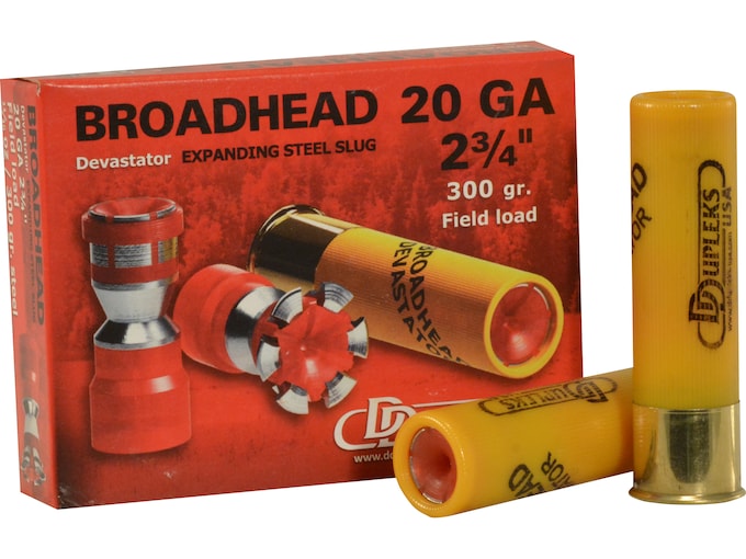 DDupleks Broadhead Devastator Ammunition 20 Gauge 2-3/4″ 11/16 oz Expanding Steel Slug Lead-Free Box of 5