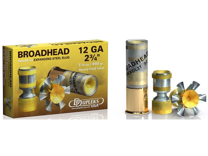 DDupleks Broadhead Hexolit 32 Ammunition 12 Gauge 2-3/4″ 1-1/8 oz Expanding Steel Slug Lead-Free Box of 5