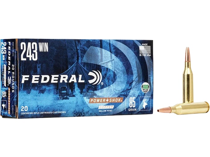 Federal Power-Shok Ammunition 243 Winchester 85 Grain Copper Hollow Point Lead-Free Box of 20