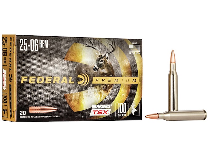 Federal Premium Ammunition 25-06 Remington 100 Grain Barnes TSX Hollow Point Lead-Free Box of 20