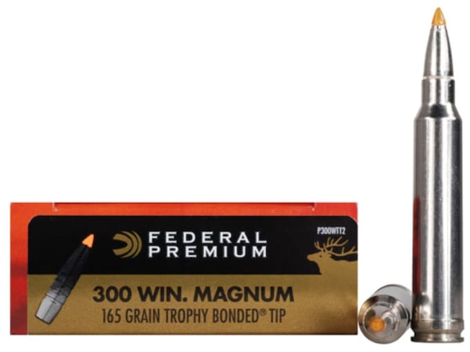 This load features the Trophy Bonded Tip bullet. Like most tipped bullets, the tip provides for more aerodynamics in flight which increases accuracy and performance. It features excellent weight retention as well as improved ballistic coefficients. Both the projectile and brass are nickel plated for protection against corrosion and easier extraction. Ideal on medium sized game like mule deer or whitetails.