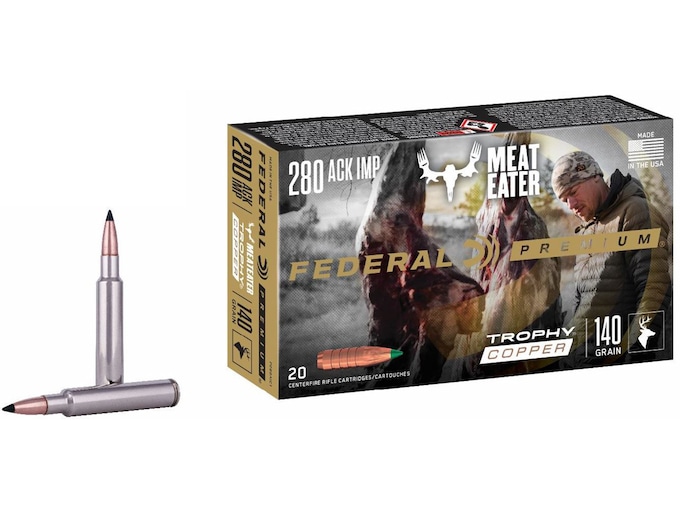 Federal Premium Meat Eater Ammunition 280 Ackley Improved 140 Grain Trophy Copper Tipped Boat Tail Lead-Free Box of 20