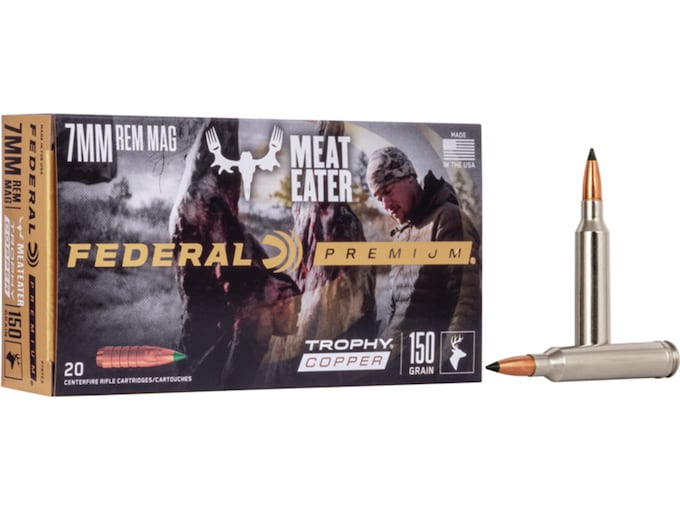 Federal Premium Meat Eater Ammunition 7mm Remington Magnum 150 Grain Trophy Copper Tipped Boat Tail Lead-Free Box of 20