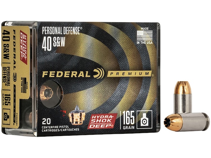 Federal Premium Personal Defense Ammunition 40 S&W 165 Grain Hydra-Shok Deep Jacketed Hollow Point Box of 20