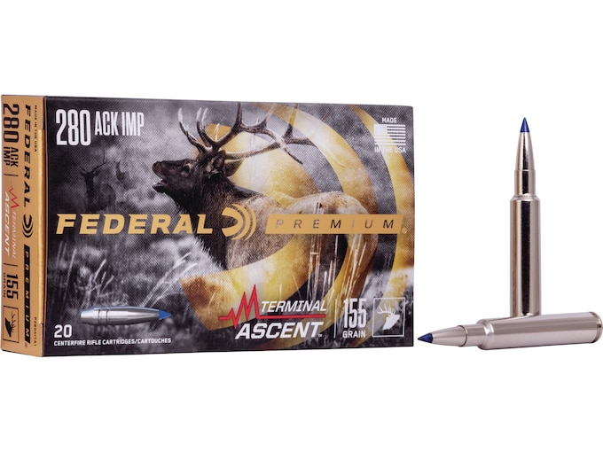 Federal Premium Terminal Ascent Ammunition allows you to go beyond what you ever thought possible. Any hunt. Any range. Bonded construction penetrates deep on close targets, while the patented Slipstream polymer tip initiates expansion at velocities 200 fps lower than comparable designs. The bullet’s long, sleek profile offers an extremely high ballistic coefficient, and its AccuChannel groove technology improves accuracy and minimizes drag. Now available in a full selection of long-range hunting cartridges. This ammunition is new production, non-corrosive, in boxer primed, reloadable nickel plated brass cases. FeaturesMatch-grade long-range accuracy in a bonded hunting bulletExtremely high ballistic coefficientExclusive Slipstream polymer tip helps flatten trajectories and initiate low-velocity expansionLess wind drift and dropAccuChannel groove technology minimizes dragCopper shank and bonded lead core retain weight for deep penetration at any range