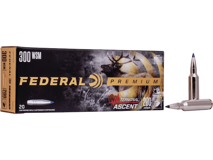 Federal Premium Terminal Ascent Ammunition 300 Winchester Short Magnum (WSM) 200 Grain Polymer Tip Bonded Boat Tail Box of 20
