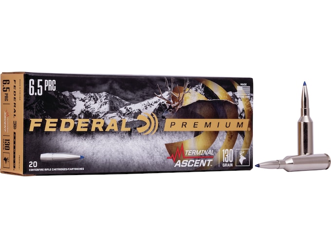Federal Premium Terminal Ascent Ammunition allows you to go beyond what you ever thought possible. Any hunt. Any range. Bonded construction penetrates deep on close targets, while the patented Slipstream polymer tip initiates expansion at velocities 200 fps lower than comparable designs. The bullet’s long, sleek profile offers an extremely high ballistic coefficient, and its AccuChannel groove technology improves accuracy and minimizes drag. Now available in a full selection of long-range hunting cartridges. This ammunition is new production, non-corrosive, in boxer primed, reloadable nickel plated brass cases. FeaturesMatch-grade long-range accuracy in a bonded hunting bulletExtremely high ballistic coefficientExclusive Slipstream polymer tip helps flatten trajectories and initiate low-velocity expansionLess wind drift and dropAccuChannel groove technology minimizes dragCopper shank and bonded lead core retain weight for deep penetration at any range