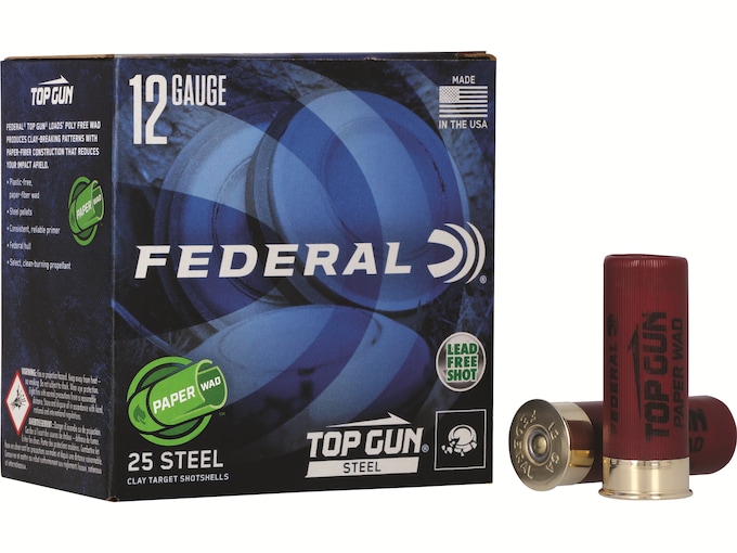 Federal Top Gun Target Loads feature Federal’s environmentally friendly paper wad and non-toxic steel shot. These shotshells also feature a clean burning powder to ensure consistent velocity with each shot. Great for clay targets!