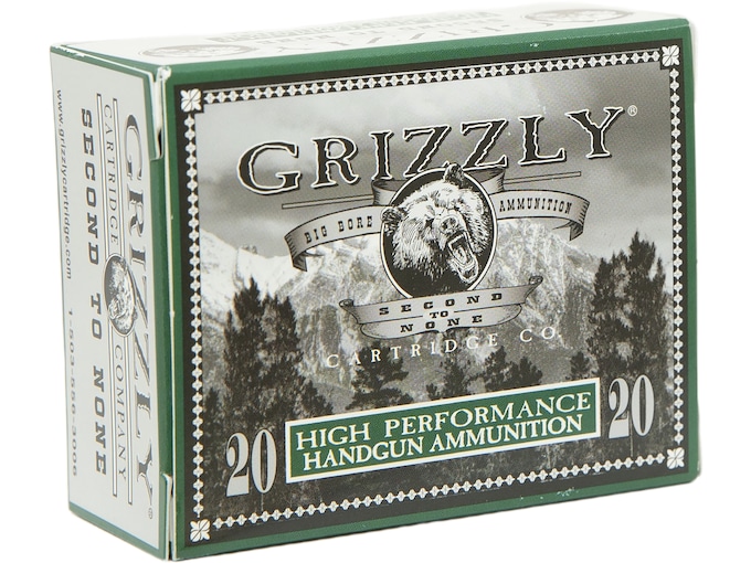 This ammunition is loaded with a Jacketed Hollow Point bullet that delivers excellent accuracy, controlled expansion, and outstanding terminal performance. These characteristics make them perfect for target shooting, self-defense, or hunting. All Grizzly Handgun ammunition is loaded with flash-suppressed powder. New production, non-corrosive in reloadable brass cases.