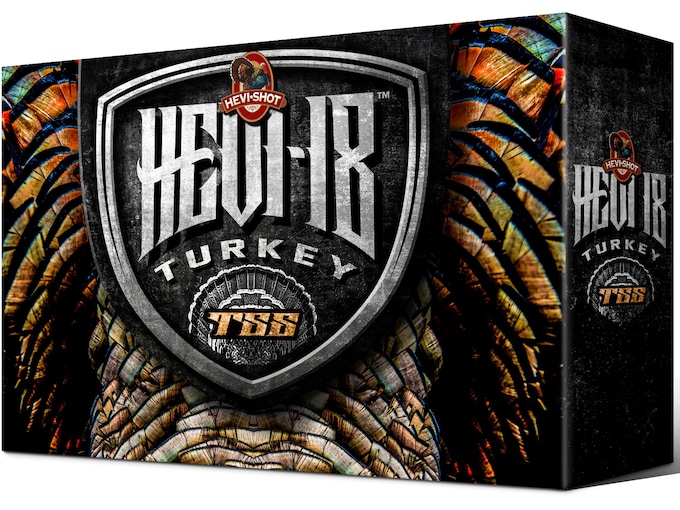 Hevi-Shot joins the Tungsten Super Shot leagues with Hevi-18 TSS Turkey, bringing best in class performance to the turkey market. Hevi-18 TSS 18 g/cc density pellets offered in shot sizes #7 and #9, provide high pellet counts and long-range lethality. Hevi-Shot achieves incredibly tight patterns thanks to friction-free sealed-in-the-shell spherical buffer. Hevi-18 TSS loads are available for hunters who want to watch the “tom show” up close and personal. FeaturesUltra-density (18 g/cc vs 11 g/cc for lead) pellets give unequalled downrange lethalityHeavy payloads and high velocities for maximum performanceFriction-free spherical buffer produces incredibly tight patternsA unique crimp-seal resin resists damage and holds the buffer in the shellThicker base-wad, hotter primer, and clean-burning propellants ensure all-weather reliability in semi-automatic shotguns