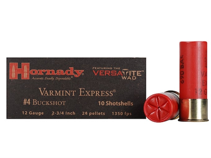 With 24 pellets of shot, coyotes and other varmints should beware! Featuring Hornady’s Versatite wad, this 12 gauge Varmint Express load delivers tight patterns by keeping the shot column small. Plus, Hornady makes their buckshot in house to make sure it stays to specific standards by using a swaging process that eliminates defects.