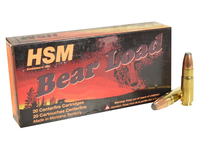 Developed as a load to protect hunters while hunting or traveling in bear country, this American made ammunition is sure to keep you safe with its extreme terminal performance and stopping power. HSM Bear Ammunition is loaded with high-quality, dependable components delivering drastically higher velocities when compared to standard loads. Trust HSM Bear loads for your protection from dangerous game. This ammunition is new production, non-corrosive, in boxer primed, reloadable brass cases.