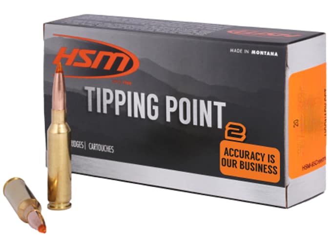 With HSM Ammo’s Tipping Point2, hunters get less drag, greater stability, and superior accuracy. Tipping Point 2 ammunition is deadly accurate and capable of creating a substantial wound channel. Add that to the promised accuracy of this ammo and you have the perfect recipe for a fantastic hunt. This ammunition is made from quality materials with strict attention to detail and high expectations for consistent, superior overall performance. Match grade accuracy combined with a payoff of extreme terminal results. The very best cases, primers, and powder, topped off with the Hornady SST bullets. An extraordinary cartridge providing an ultimate advantage. This ammunition is new production, non-corrosive, in boxer-primed, reloadable brass cases.