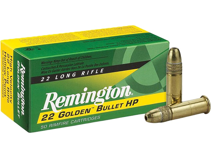 Remington Golden Bullet Ammunition 22 Long Rifle 36 Grain Plated Lead Hollow Point