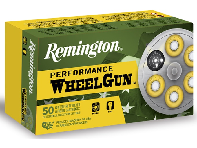 Remington Performance Wheelgun ammunition is engineered to take your Revolver and Lever Rifle skills to the next level. Made with high-quality components and Remington Kleanbore priming that will not rust or corrode barrel. Available in traditional Revolver and Lever Rifle bullet styles for competitive and target shooting applications. For the legendary performance and quality that Wheelgun and Lever Rifle owners demand, Remington Performance WheelGun delivers in spades. This ammunition is new production, non-corrosive, in boxer-primed, reloadable brass cases. FeaturesMade with high-quality componentsRemington Kleanbore priming will not rust or corrode barrelsFor competitive and target shooting applications