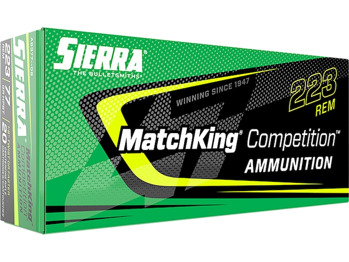 Sierra MatchKing Competition Ammunition 223 Remington 77 Grain Hollow Point Boat Tail Box of 20