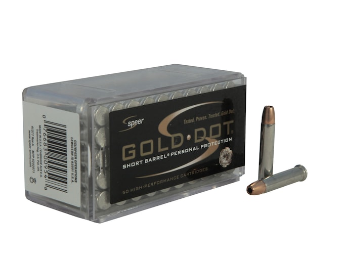 Speer Gold Dot Short Barrel Ammunition is loaded with bonded core bullets and designed for home defense and personal protection. Bonding the jacket to the core means the elimination of core-jacket separations and superior weight retention. The nickel plated cases offer increased durability and improved feeding in semi-autos.