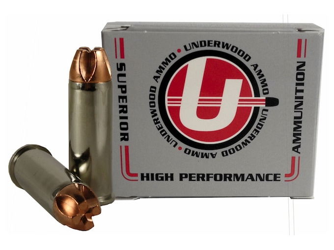 While taking advantage of state of the art testing equipment, this high performance ammunition by Underwood is field tested using popular, real firearms that customers are most likely to own out in the real world with all the elements you would experience. If for some reason Underwood Ammunition fails to meet performance expectations, Underwood stands by their product 100% and will make sure the customer is satisfied with every purchase. This ammunition is new production, non-corrosive, in boxer primed, reloadable brass cases.The Underwood nickel plating process provides several key benefits including; improved feeding in all actions of firearms, enhanced corrosion resistance over traditional brass, improved cosmetics, and ease of cleanup during reloading. Nickel plated casings will not tarnish like brass during storage or when in contact with foreign materials such as leather, moisture, and other metals. Until the development of the Ducta-Bright 7a process, nickel plating casings often limited the number of reloads as compared to raw brass. It was claimed that nickel plated brass casings embrittled the brass therefor making it less desirable for reloaders despite the ease of cleanup that nickel plating offers. In addition, ammunition engineers raising concerns of using nickel plating in very hot +P or magnum loads found that traditional nickel plating often cracked deep-drawn cases, or worse, lead to a total failure. This new process eliminates any concern, to the shooter or reloader, of hazard or ability to re-use the brass.The Lehigh Xtreme Penetrator bullet features progressive nose geometry, which allows for deep, straight penetration while creating a permanent wound cavity diameter exceeding that of most expanding bullets. To top it off, the bullet is solid copper and is able to overcome barriers to penetration; environmentally friendly, target unfriendly, very unfriendly, downright obnoxiously unfriendly. The magic happens with the nose design where the radial flutes force the hydraulic energy inward and then as the energy is restricted, it accelerates outward creating high pressure spikes damaging surrounding tissue. Kind of similar to sticking your thumb over a garden hose. The permanent wound cavity of the XP is from two to four times greater than what a flat or ball nose bullet generates and often larger than traditional expanding bullets. So what you get is exceptional penetration coupled with a larger permanent wound cavity. The solid copper alloy construction will not deform when contacting hard surfaces like a lead jacketed bullet will do nor will it fragment as some hard cast lead bullets are prone to do. What it will do is overcome surface barriers and penetrate straight and deep while creating a massive wound channel.Suppressor Safe— The projectile is machined from solid bar stock. This is not a frangible bullet produced from powdered metal.FeaturesProgressive nose geometry for deep, straight penetrationCNC machined from solid copper to overcome barriers to penetrationRadial flutes that force the hydraulic energy inward to build pressureA permanent wound cavity that is 2 to 4 times greater than flat or ball nose bullets