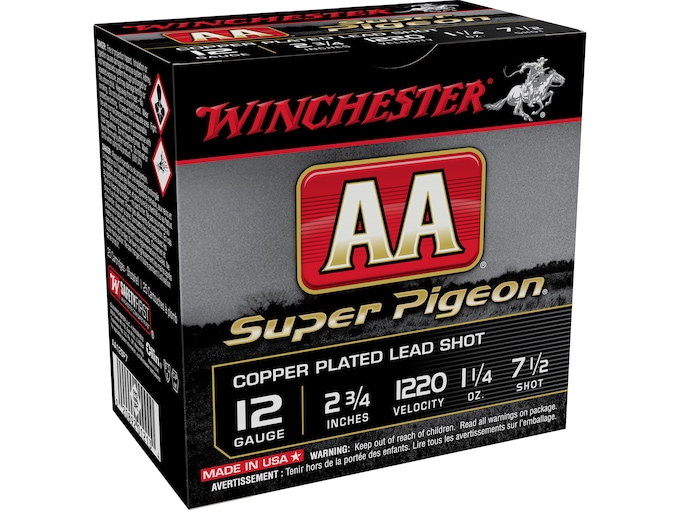 Winchester AA Super Pigeon Ammunition is a great choice for hunting small game or upland birds. AA Shotshells feature a high-strength hull providing reliable performance and reloadability along with a specially engineered wad designed to increase pattern performance and reduce recoil for high-volume shooters. The high quality primer and powder ensure reliable ignition while the hard lead shot takes down more birds.