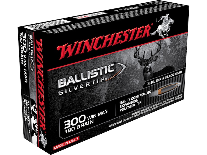 Winchester Ballistic Silvertip Ammunition 300 Winchester Magnum 180 Grain Rapid Controlled Expansion Polymer Tip Box of 20