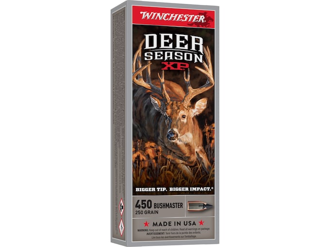Deer Season XP combines decades of Winchester experience into the perfect choice for deer hunting ammunition. Accuracy, combined with massive bullet impact performance means that Deer Season XP is a great choice for all deer hunters. The large diameter polymer tip accelerates bullet expansion for rapid trauma upon impact, while the streamlined ballistic profile optimizes the bullet’s downrange performance. This load was built specifically for deer hunting and taking down big bucks. The ballistic profile of Winchester Extreme Point bullets provide improved downrange ballistics. The alloyed lead core is optimized for energy transfer and impact power. The contoured copper jacket has a tapered profile for rapid expansion and terminal penetration. A large diameter polymer tip accelerates bullet expansion for rapid trauma upon impact. This ammunition is new production, non-corrosive, in boxer primed, reloadable brass cases.FeaturesMassive Knockdown PowerPrecision AccuracyStreamlined for High B.C.Built Specifically for Deer Hunting