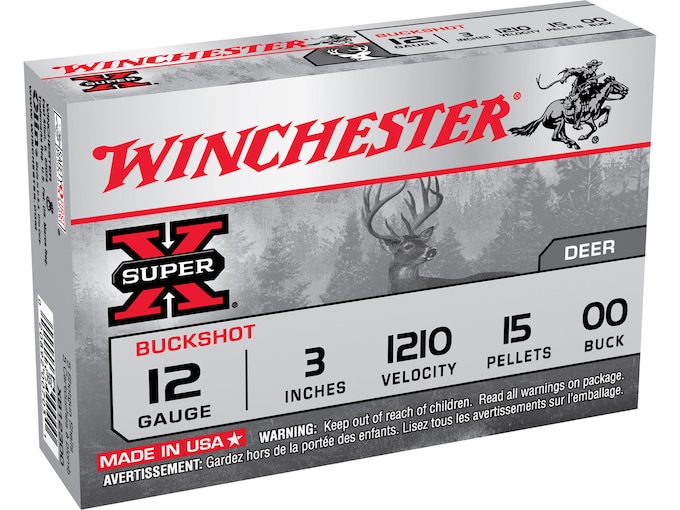 Winchester Super-X Ammunition 12 Gauge 3″ Buffered 00 Buckshot 15 Pellets