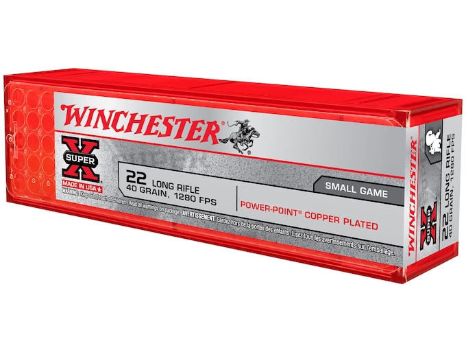 Winchester Super-X High Velocity Ammunition 22 Long Rifle 40 Grain Power-Point Plated Lead Hollow Point